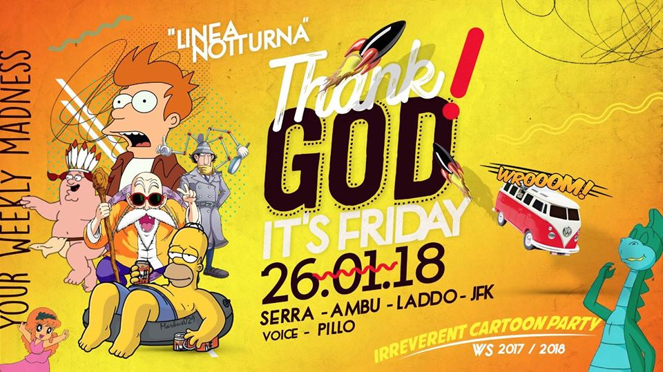 THANK GOD IT’S FRIDAY – LINEA NOTTURNA- CAGLIARI – VENERDI 26 GENNAIO 2018