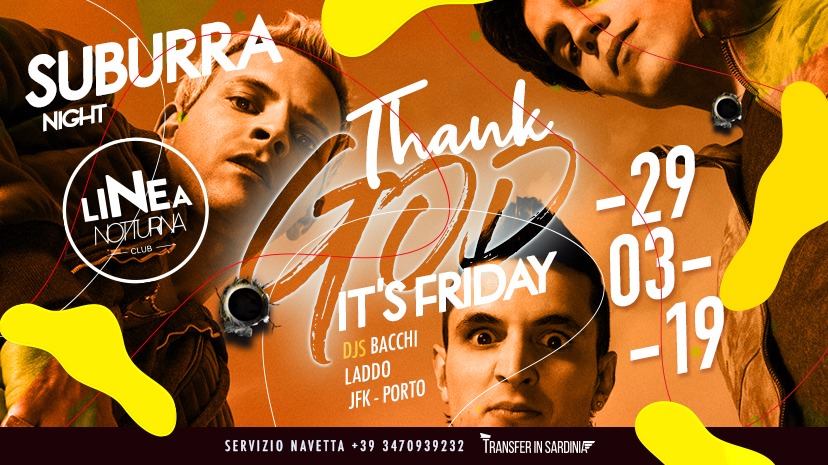 THANK GOD IT’S FRIDAY – LINEA NOTTURNA – CAGLIARI – VENERDI 29 MARZO 2019