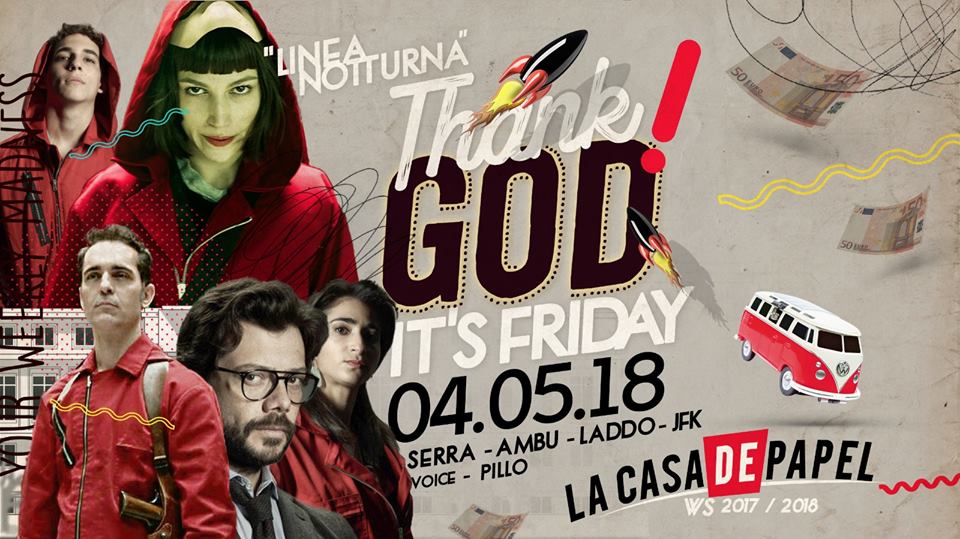 THANK GOD IT’S FRIDAY – LINEA NOTTURNA – CAGLIARI – VENERDI 4 MAGGIO 2018 Reviewed by admin on . Venerdì continua la battaglia contro la sobrietà e la moderazione. Lasciamo a casa i problemi e celebriamo l’inizio del weekend come si deve, tra gadget e music Venerdì continua la battaglia contro la sobrietà e la moderazione. Lasciamo a casa i problemi e celebriamo l’inizio del weekend come si deve, tra gadget e music Rating: 0