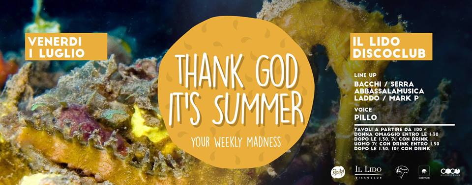 THANK GOD IT’S SUMMER – LIDO DISCO CLUB- CAGLIARI – VENERDI 1 LUGLIO 2016