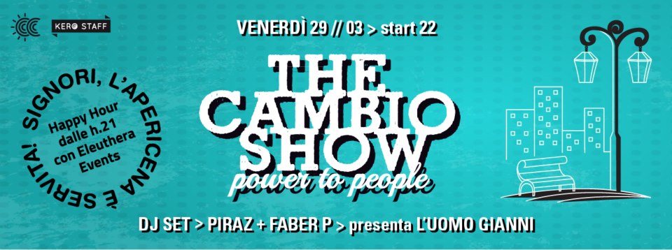 “The Cambio Show – Power to People” ritorna la nostra inconfondibile Apericena Servita e per l’occasione e proprio per l’Happy Hour continua