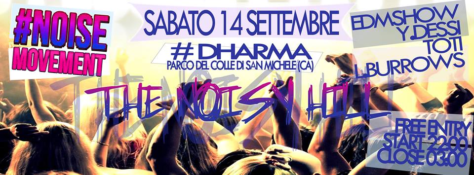 THE NOISY HILL – DHARMA LOUNGE BAR – CAGLIARI – SABATO 14 SETTEMBRE 2013THE NOISY HILL – DHARMA LOUNGE BAR – CAGLIARI – SATURDAY SEPTEMBER 14 Reviewed by admin on . Per salutare l' estate abbiamo deciso di tornare dominando tutta Cagliari da uno dei suoi punti più alti e suggestivi, unendo la nostra/vostra carica esplosiva Per salutare l' estate abbiamo deciso di tornare dominando tutta Cagliari da uno dei suoi punti più alti e suggestivi, unendo la nostra/vostra carica esplosiva Rating: