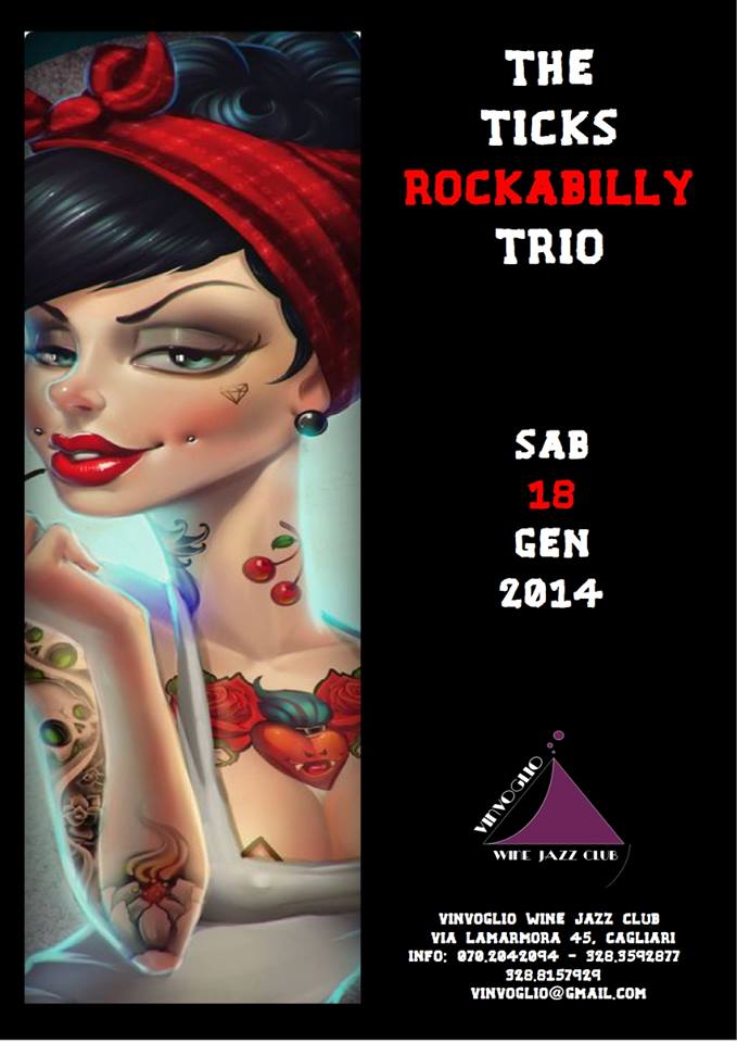 THE TICKS ROCKABILLY TRIO – VINVOGLIO WINE JAZZ -CAGLIARI – SABATO 18 GENNAIO 2014THE TICKS ROCKABILLY TRIO – VINVOGLIO WINE JAZZ -CAGLIARI – SATURDAY JANUARY 18,2014