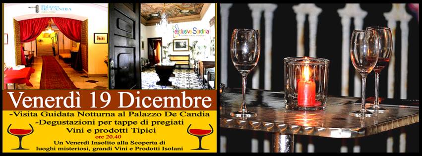 Visita guidata e notturna all’ interno del Palazzo de Candia, con degustazione per tappe all’interno del Palazzo dei migliori vini delle Cantine Isolane e di una selezione di dieci prodotti tipici della Tradizione Sarda.
