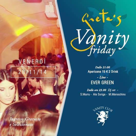 VANITY FRIDAY – GRETA’S – CAGLIARI – VENERDI 28 NOVEMBRE 2014