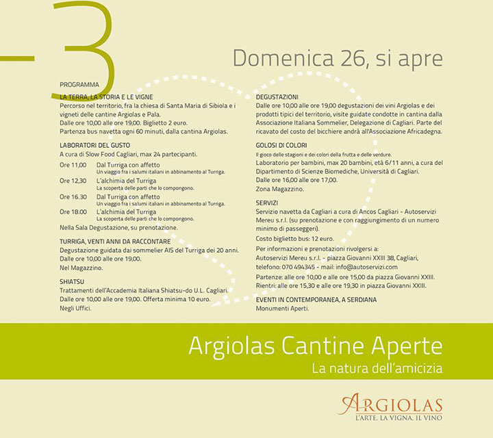 Nel programma delle Cantine aperte 2013, spicca il programma delle Cantine Argiolas