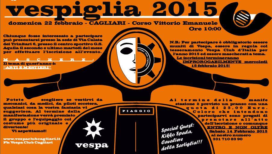 Anche quest’anno, in occasione della chiusura dal carnevale Il “Vespa Club Cagliari”,organizza, nel lungomare Poetto, nel tratto compreso tra le via Capri e la via Gorgona, per il 22 febbraio 2015, dalle ore 9 alle ore 13.30 la VI edizione della manifestazione“la Vespiglia”,