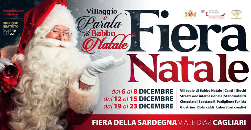 - ore 11,00 – Babbo Natale arriva in Fiera – Grande parata di Babbo Natale: un corteo festoso e natalizio composto da circa 150 figuranti tra cui: banda musicale, majorette, trampolieri giocolieri, mascotte disney, clown tamburini e naturalmente lui Babbo Natale in una Slitta gigante e accompagnato dai suoi amici elfi e dall’ Orso Artic, partiranno da Viale Bonaria percorrendo Via Del Cimitero, Viale Diaz fino ad arrivare alla Fiera di Cagliari.