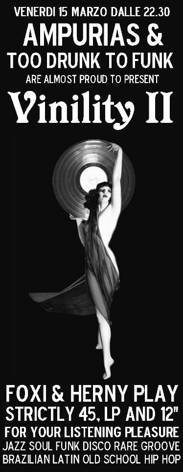 VINILITY – AMPURIAS – CAGLIARI – VENERDI 15 MARZOVINILITY – AMPURIAS – CAGLIARI – FRIDAY MARCH 15