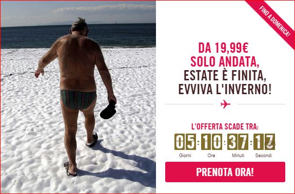 Volotea ha appena lanciato una nuova promozione valida soltanto fino a domenica 5 ottobre 2014 mettendo a disposizione biglietti a partire da 19,99 euro a tratta, tasse incluse per volare in Italia ed in Europa fino ad esaurimento posti.