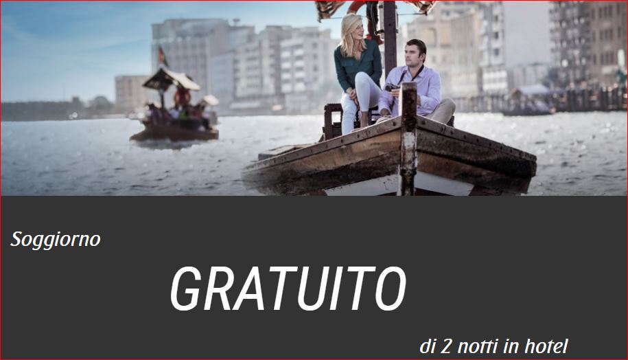 VOLA A DUBAI CON EMIRATES E RICEVI 2 NOTTI IN HOTEL GRATIS ! Reviewed by admin on . La compagnia aerea di bandiera araba Emirates ha appena lanciato un'interessante promozione che consente di ricevere un soggiorno GRATIS di 2 notti in hotel pre La compagnia aerea di bandiera araba Emirates ha appena lanciato un'interessante promozione che consente di ricevere un soggiorno GRATIS di 2 notti in hotel pre Rating: 0