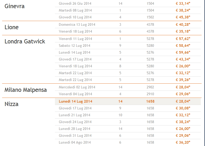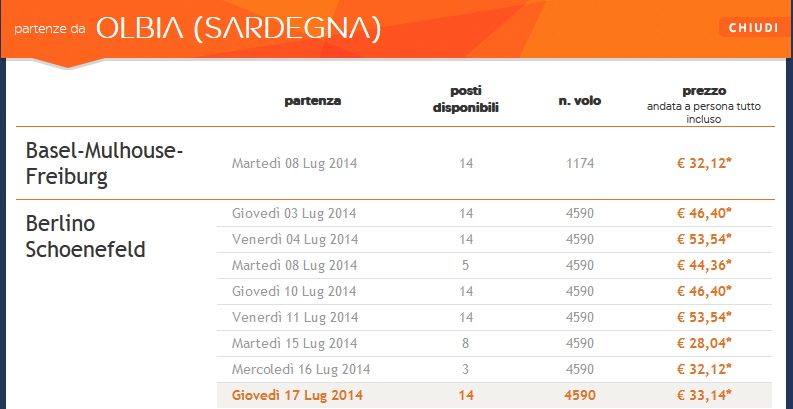Qui sotto trovate gli screenshot dagli aeroporti di partenza di Cagliari,Alghero e Olbia mentre nel link trovate tutti gli altri aeroporti nazionali tra cui Roma e Milano.