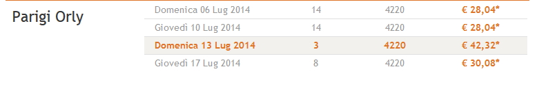 By connecting to this page you will find the list of the last seats available according to departure airport.