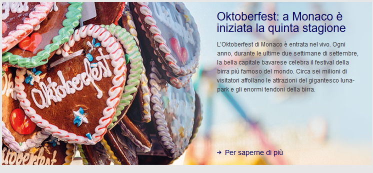 l’Oktoberfest di Monaco è il più grande festival della birra del mondo. Per celebrare questo gigantesco evento le offriamo voli in tutto il mondo a prezzi assolutamente fantastici. Prenoti subito la destinazione che decide LEI e parta per il viaggio dei suoi sogni!