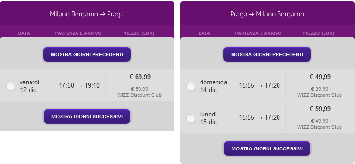 Searching through the deals we found some discounted tickets to go to the Christmas Markets in Prague, departing from Rome Fiumicino and Milan Bergamo.