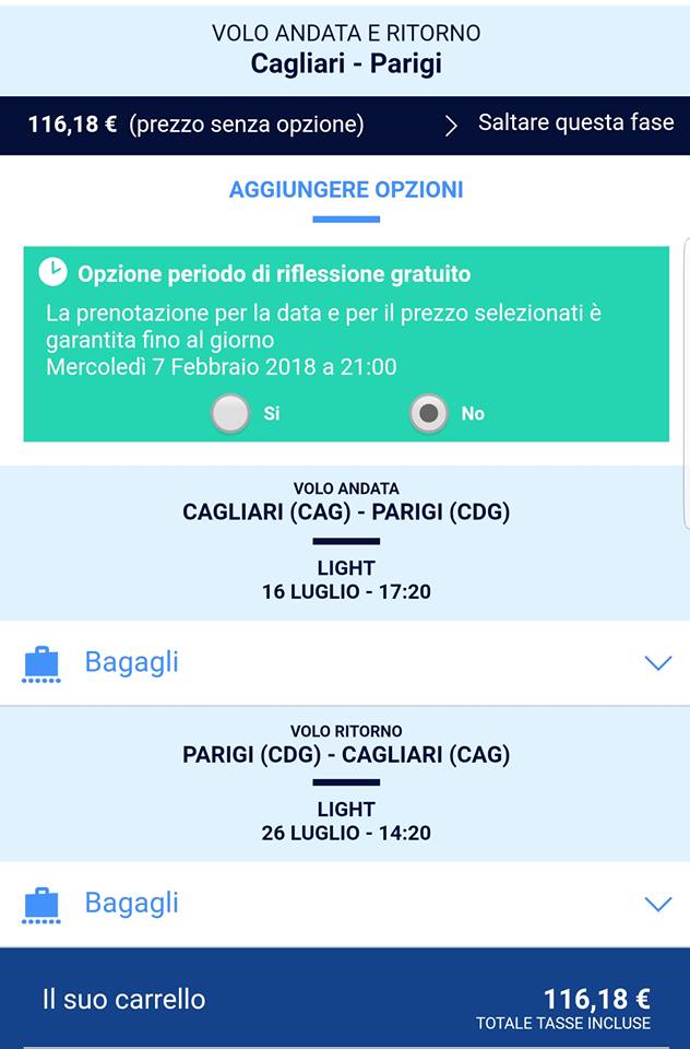 Come vedete nello screenshot in basso si possono acquistare voli andata/ritorno a partire da 110 €.