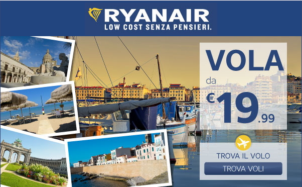 Wide range of Ryanair until Monday August 4, 2014 in Italy and Europe offers flights from 19 €.