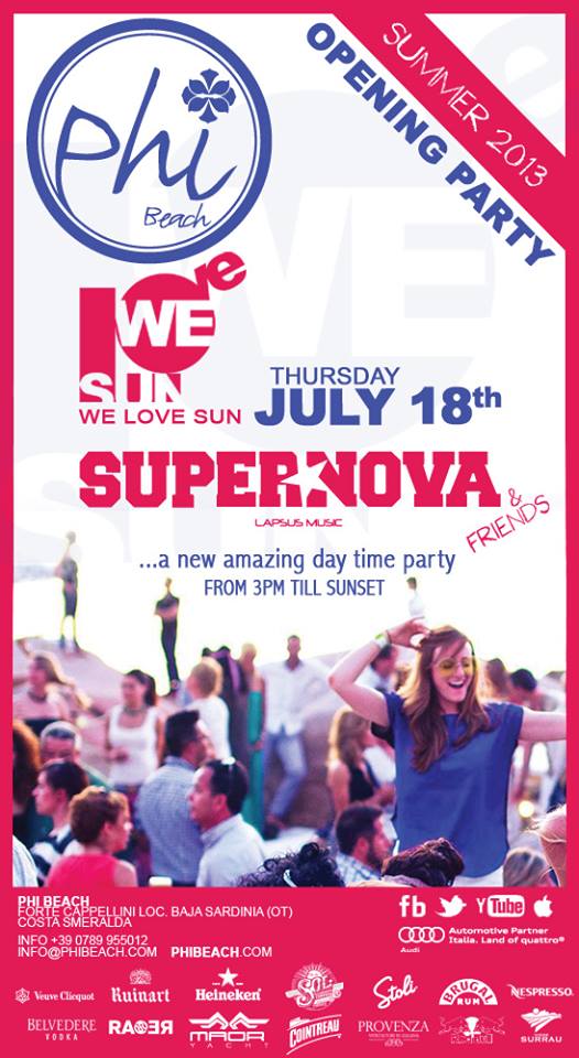 WE LOVE SUN – OPENING PARTY – PHI BEACH – BAJA SARDINIA – GIOVEDI 18 LUGLIO 2013WE LOVE SUN – OPENING PARTY – PHI BEACH – BAJA SARDINIA – THURSDAY JULY 18