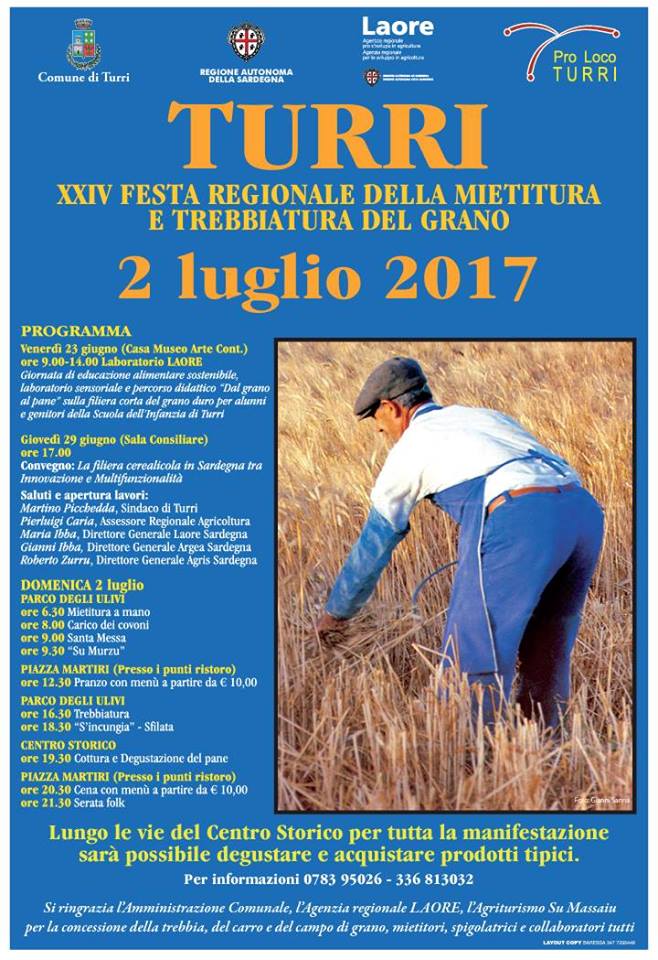 XXIV FESTA REGIONALE DELLA MIETITURA E TREBBIATURA DEL GRANO – TURRI- DOMENICA 2 LUGLIO 2017