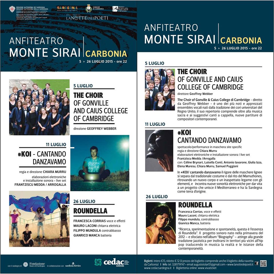 XXXIII FESTIVAL LA NOTTE DEI POETI – ANFITEATRO MONTE SIRAI -CARBONIA- 5-26 LUGLIO 2015